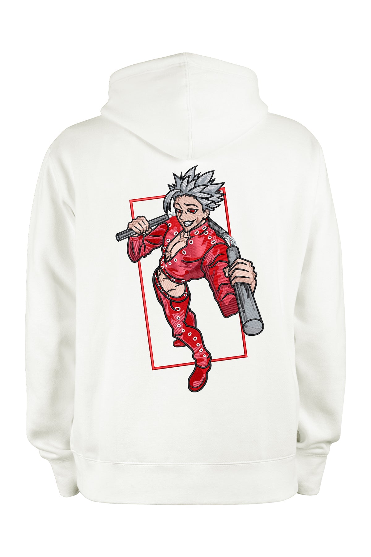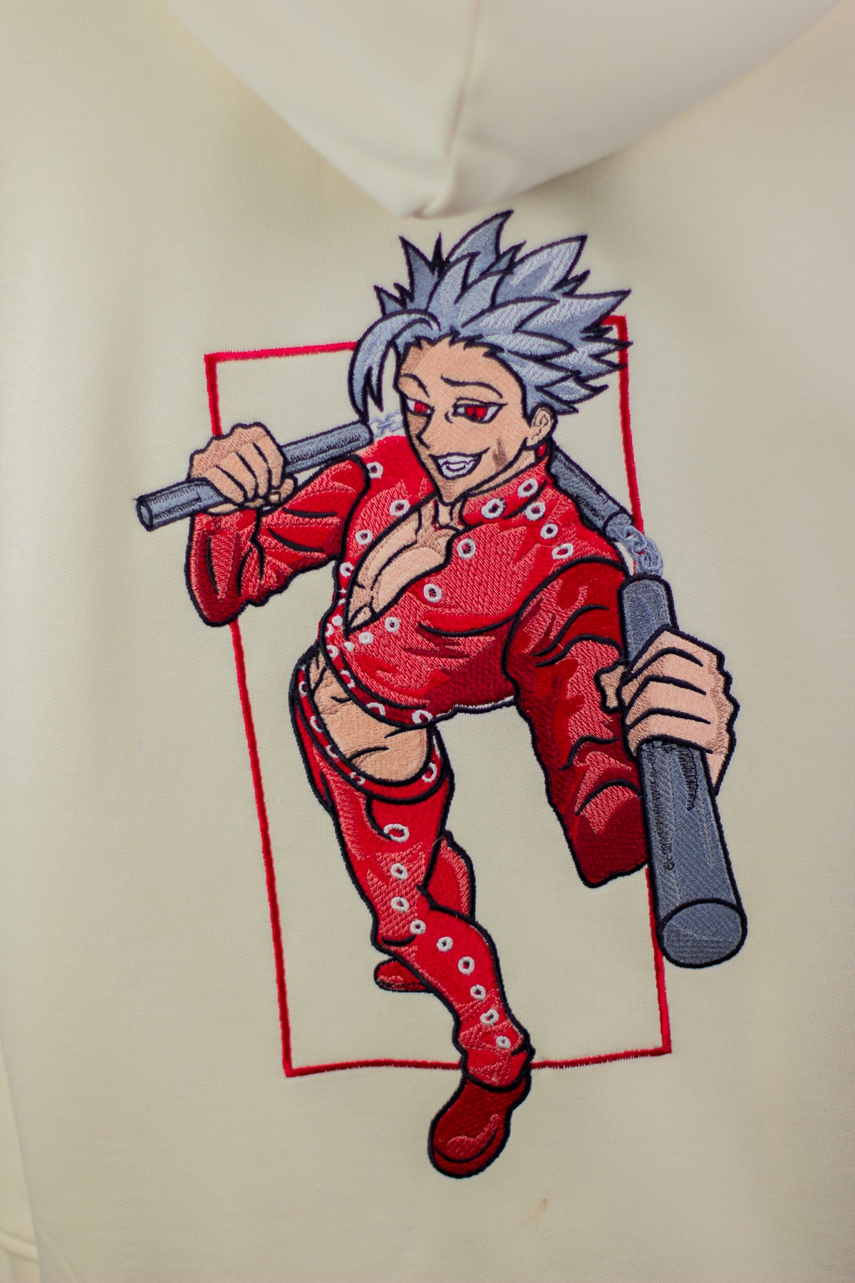 Inspired by Ban from Nanatsu no Taizai, this the Seven Deadly Sins hooded sweatshirt features stunning embroidered artwork and warms, it offers both a fashionable and sustainable option for anime lovers. Get ready to show off your style!