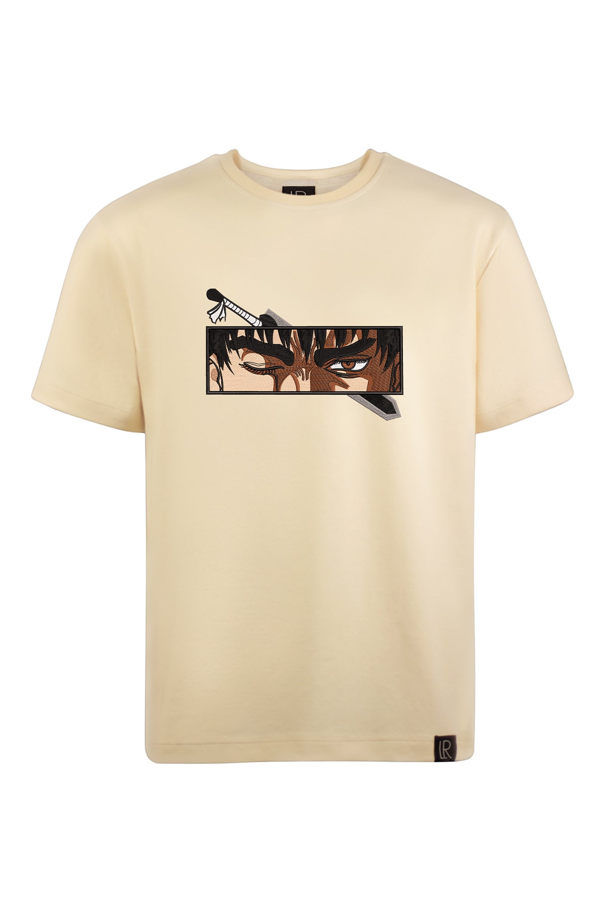Bring the legend of the Black Swordsman to life with this Guts tee. Crafted for both style and comfort, this high-quality embroidered Berserk shirt is perfect for any fan. Wear your fandom proudly!