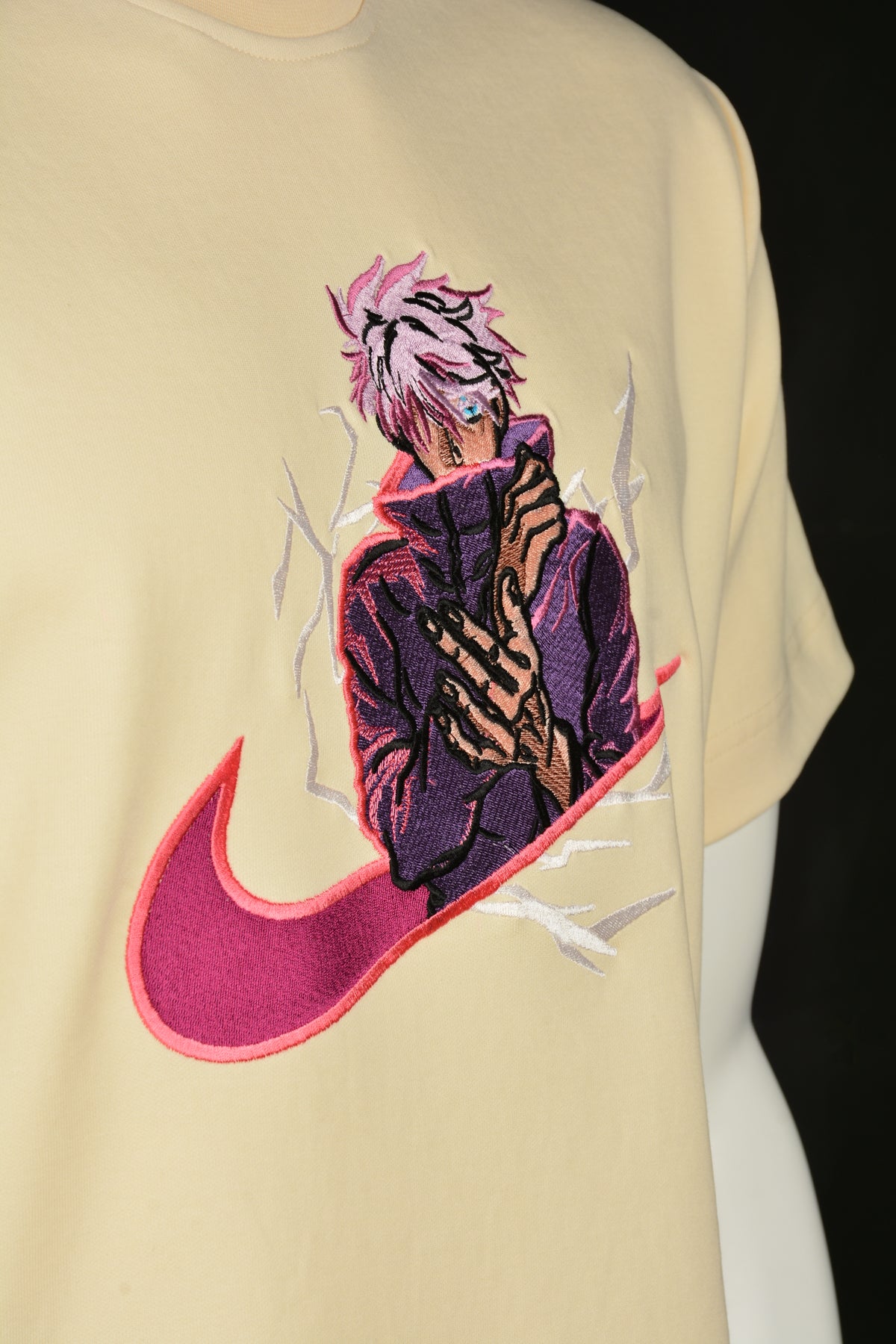 Channel the limitless strength of Gojo Satoru with this Nike-inspired Jujutsu Kaisen T-shirt! Featuring detailed embroidery on premium fabric - Comfort meets style in this one-of-a-kind design.