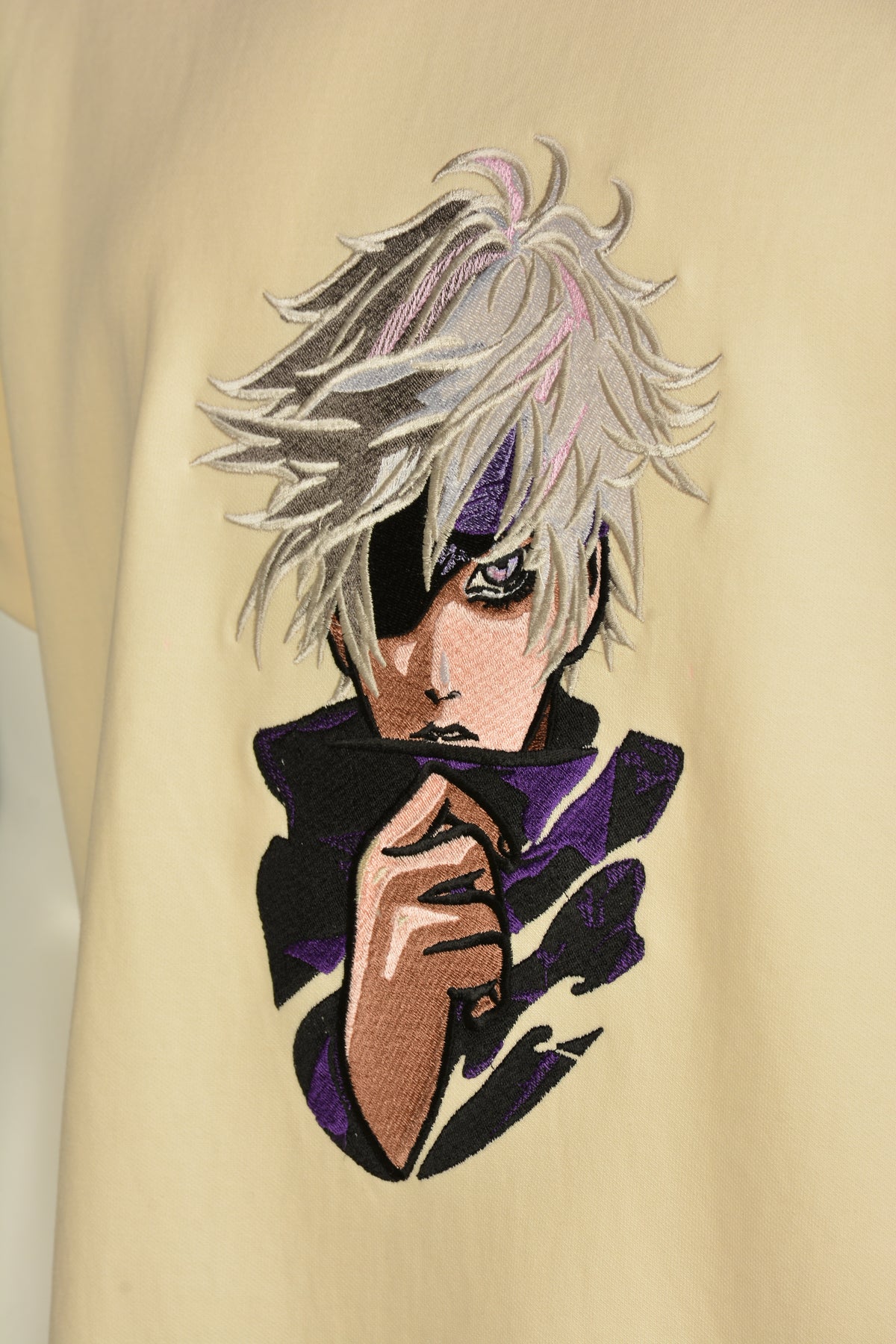 Get ready to take on curses with Gojo Satoru in this Jujutsu Kaisen t-shirt. The high-quality embroidery and soft fabric make it both stylish and comfortable. Perfect for fans who want to represent their favorite sorcerer!